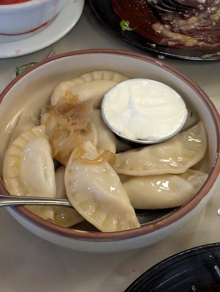 Start your meal with a bowl of borscht, the iconic beet soup that is a staple in Russian households. Kalinka’s version is made fresh, with the perfect balance of sweetness and tang. It's served with a dollop of sour cream on top, making each spoonful even more satisfying. Pair it with some fresh rye bread for an added touch of authenticity.
