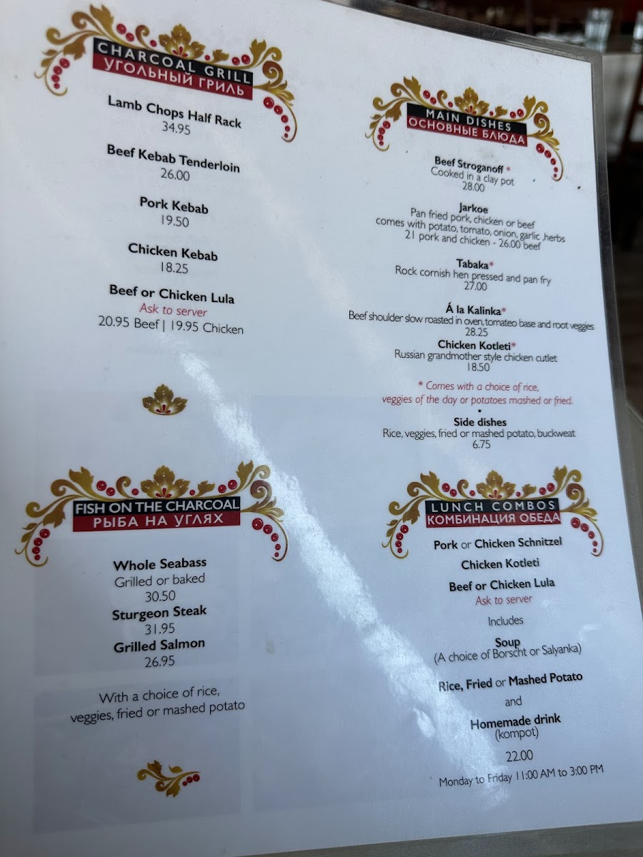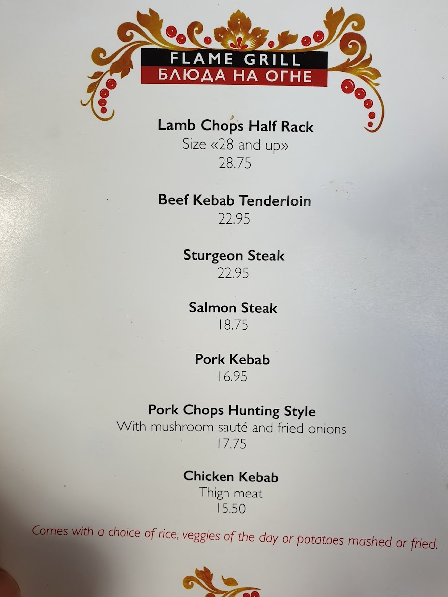 Lamp chops, beef, pork,chicken kebabs and comes with grilled eggplant, tomatoes, potatoes and peppers